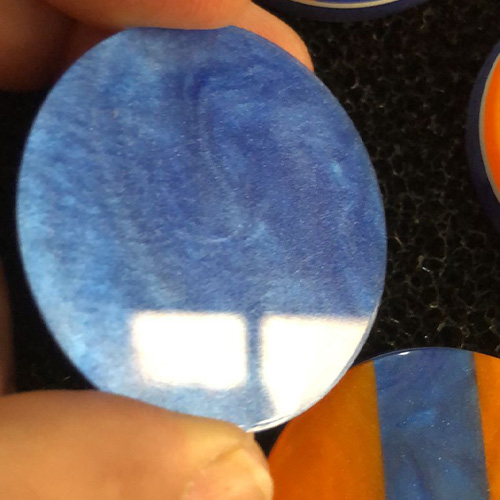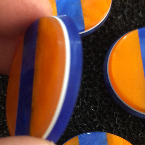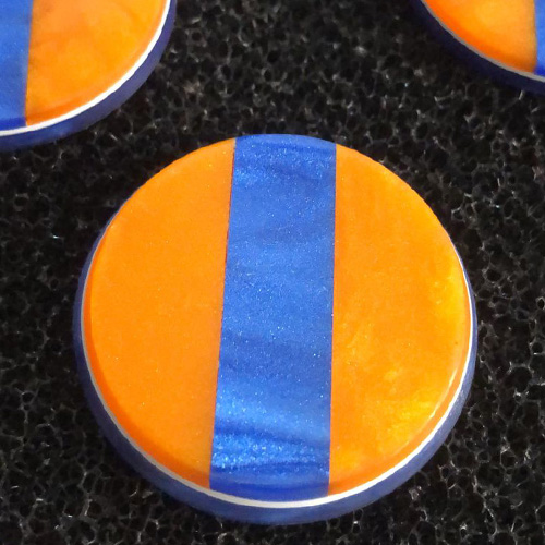 Time superfície perolado Azul e Laranja, camada do meio branca e base Azul perolado.
